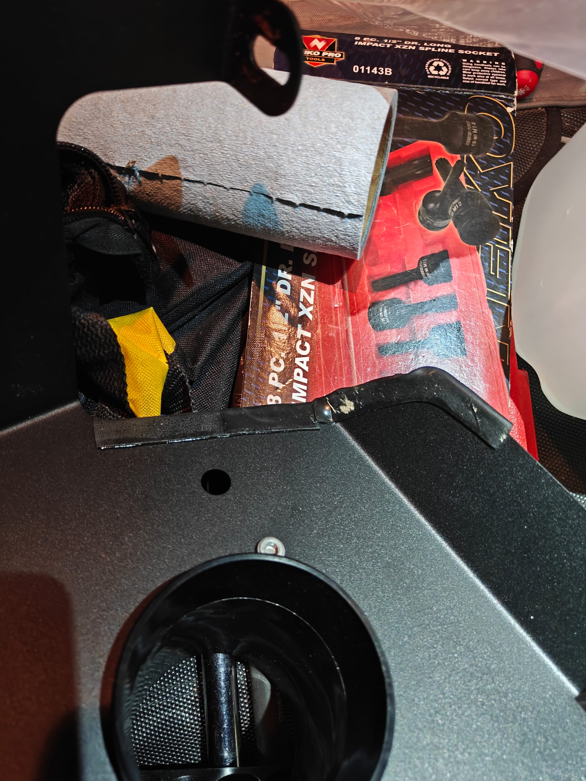 - Tiny 5mm hex wrench for one single bolt underneath the center runner. This made me so angry that I almost rage sold my car.
